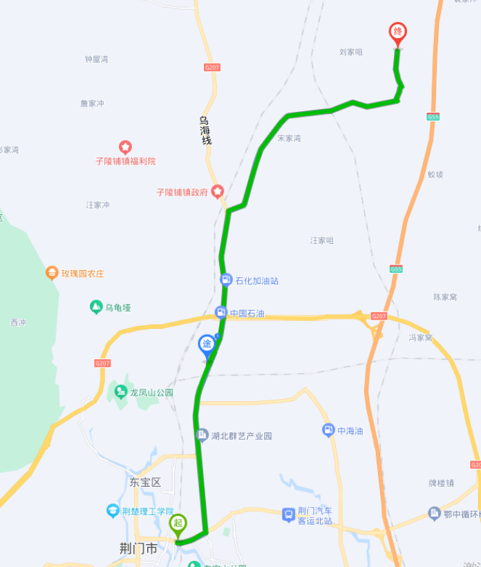 象山一路(原)文化宮-月亮湖路-月亮湖北路-國(guó)道207-鄉(xiāng)道023-八角。