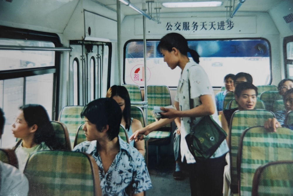 ▲90年代,公交售票員工作模樣??嬷卑?,手中拿著零錢和車票,收錢、找錢、給票、查票行云流水。高峰期數(shù)十人上下車,想要收好票款,無疑是一種考驗(yàn),而她們久經(jīng)考驗(yàn)。